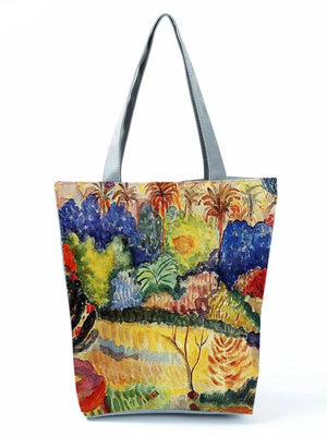 Elevate your style with this vibrant oil painting printed handbag. Perfect for shopping, travel, or a day at the beach.