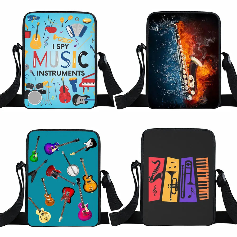 This stylish shoulder bag features a vibrant flame print with a jazz saxophone design, perfect for music lovers. It can be used as a small clutch or hip hop messenger bag for girls.