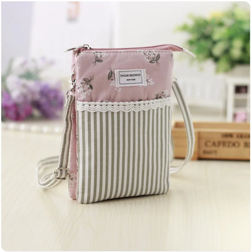 Floral Print Canvas Crossbody Bag for Women