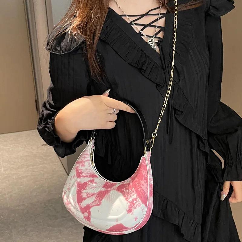 Floral Print Chain Crossbody Bag Half Moon Handbag