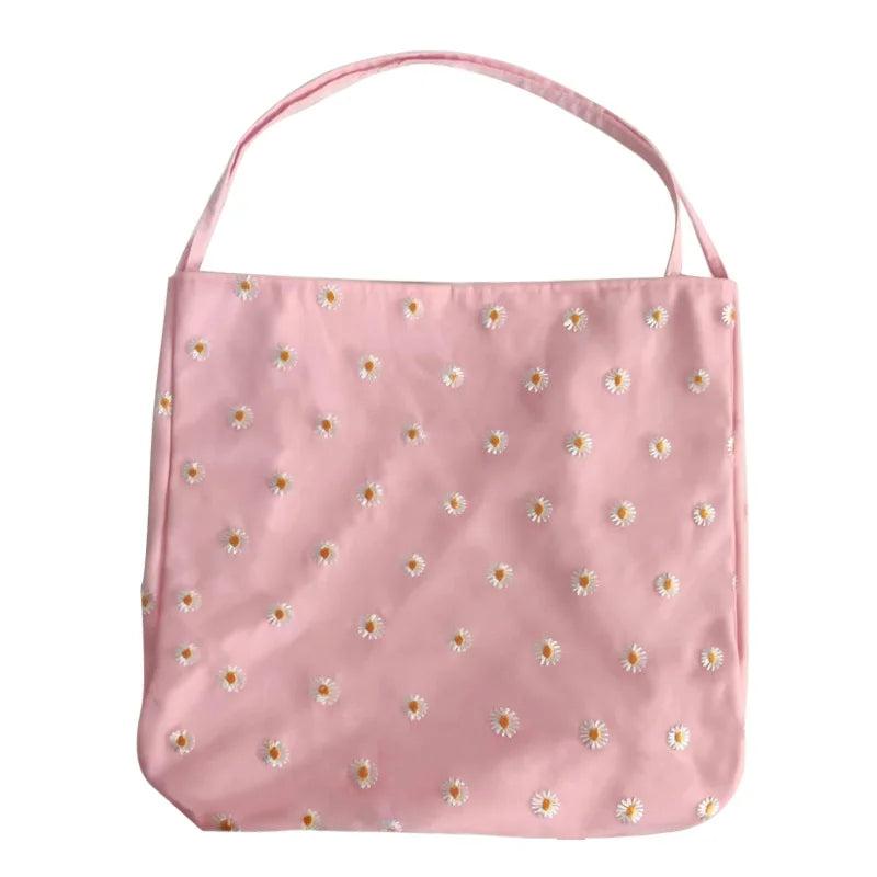 Floral Shoulder Bag Canvas Tote Large Capacity Embroidery Student Book Handbag