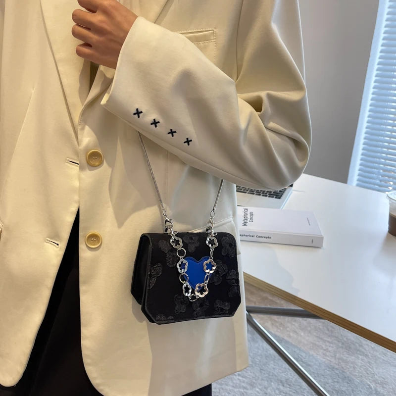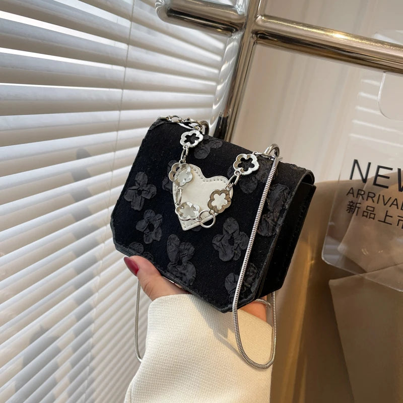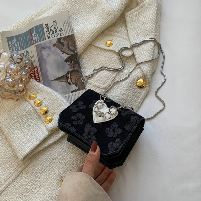 Floral Stitching Ladies Messenger Bag Peach Heart Flap Small Square Purse Handba