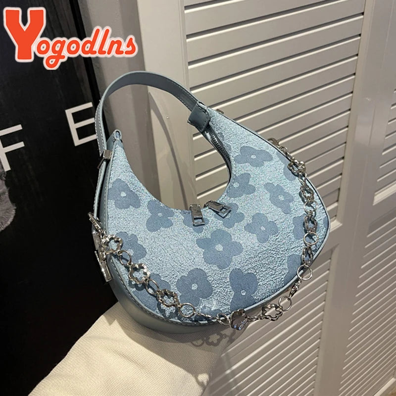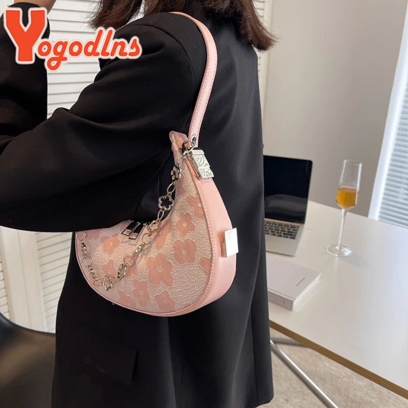 Floral Underarm Bag Chains Half-moon Shoulder Bag