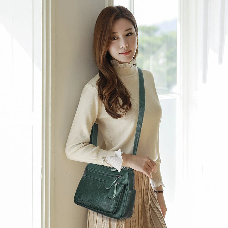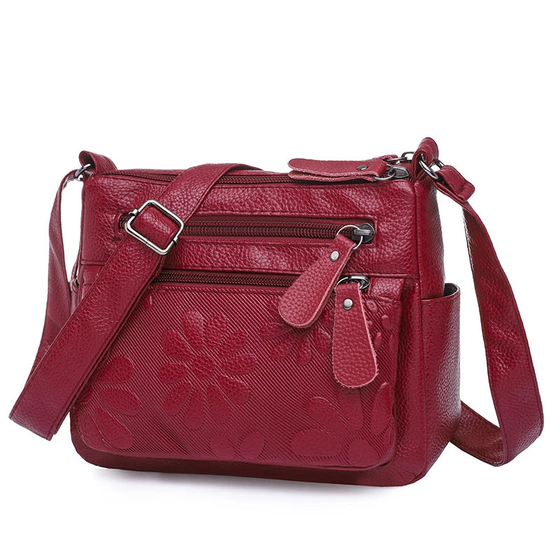 Stay stylish and organized with this floral leather handbag that is perfect for shopping and everyday use.