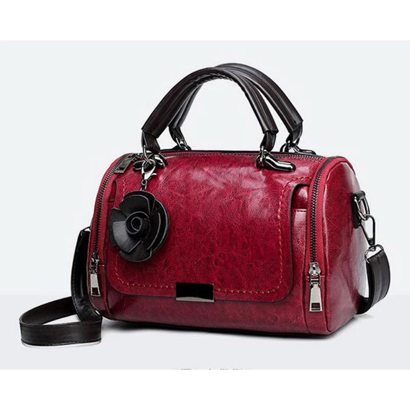Flowers Pendant Handbag Women's Boston Bag Single Shoulder Bag