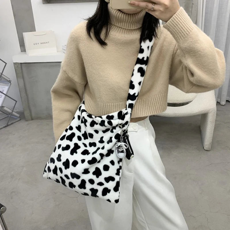 Fluffy Fur Bear Shoulder Tote Bag - Large Capacity