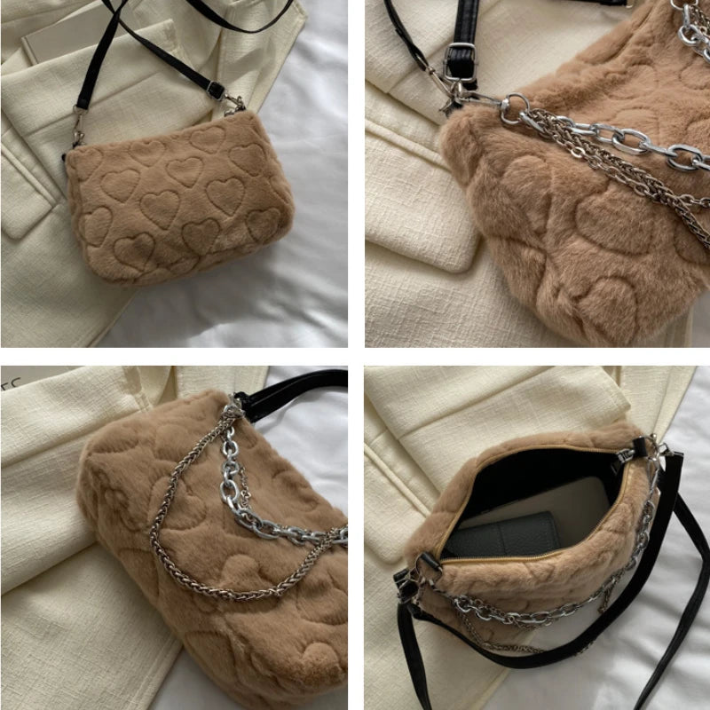 Fluffy Fur Crossbody Bag Winter Chain Tote for Women