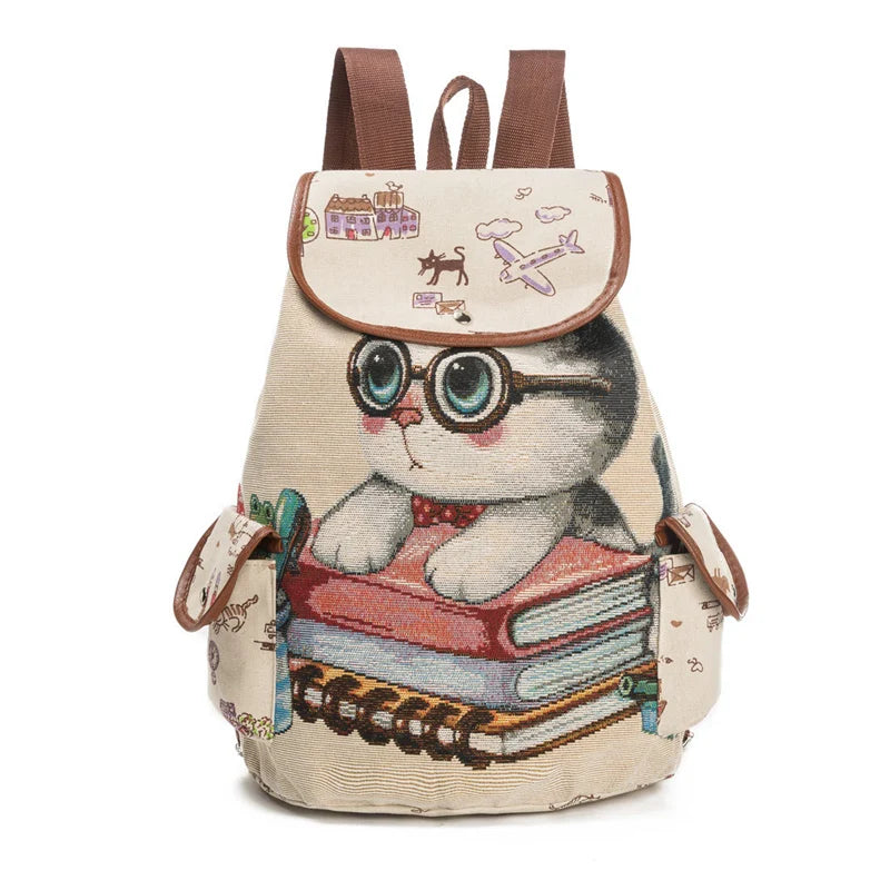 Description:This spacious school bag features a cute cat design with flying birds, perfect for teenage girls. It has a large capacity for books and essentials.Features: Canvas backpack for women and teenage girls Drawstring closure design for easy access Printed with a lovely cat and flying birds pattern Large capacity to...