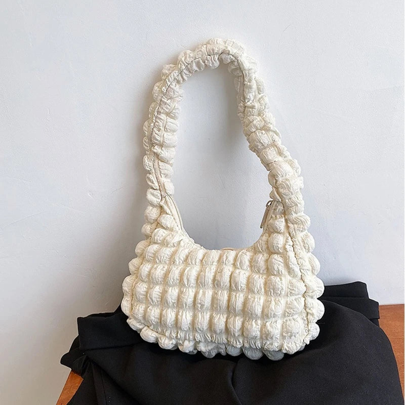 This stylish underarm bag is perfect for everyday use. It features a French pleated design and a solid color. Ideal for traveling, daily use, shopping, and dating.