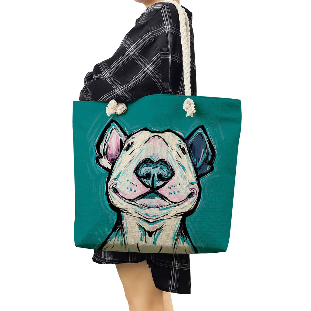Funny Bull Terrier Dog Print Tote Bag for Women