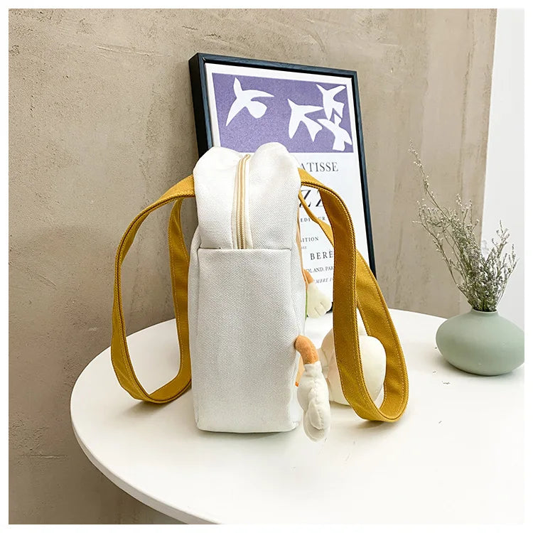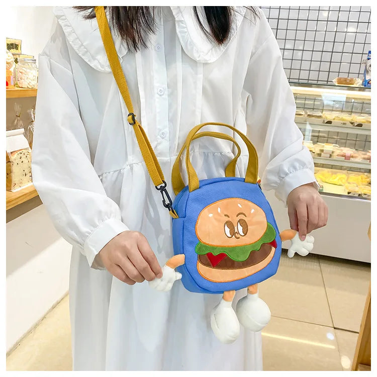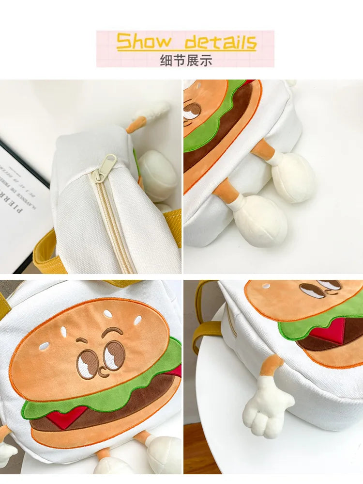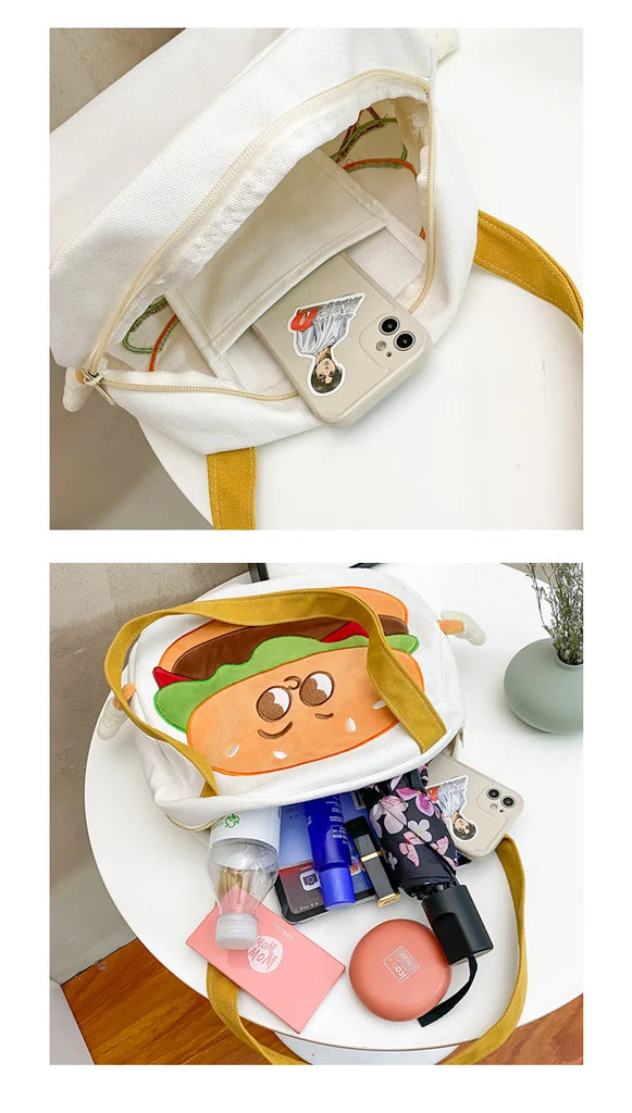 Adorable cartoon hamburger canvas bag perfect for casual outings. High capacity for all your essentials.