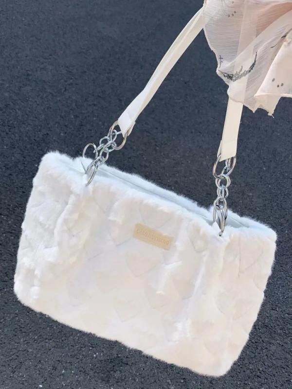 Furry Casual Tote Bag Love Heart Sweet Shoulder Plush Handbag