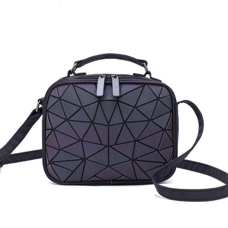 Description:This stylish handbag features a holographic design that shines in different colors under light. It can be used as a crossbody bag, clutch, or tote for versatile styling options.Features: Geometric purse with holographic design Can be used as a crossbody bag, clutch, or tote Luminous effect under light Spacious interior...