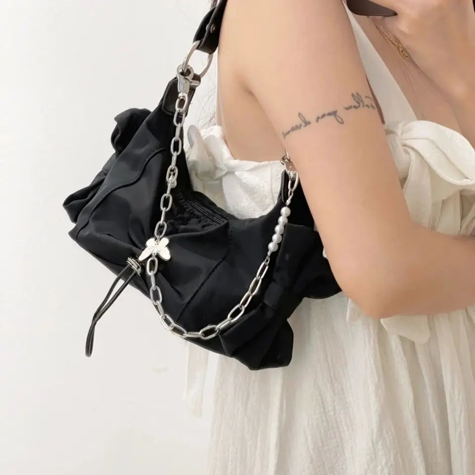 Description:This sweet and stylish shoulder bag is perfect for girls on the go. Made of high-quality nylon, it features a solid color design with a flap closure and chain strap for a trendy look.Features: Made of durable nylon material for long-lasting use Features a stylish flap closure with a zipper...