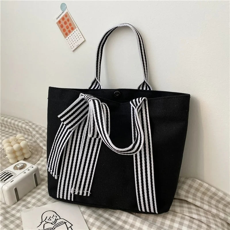 Girls Tote Bags Ladies Canvas Bag All-match Small Fresh Bow Handbags