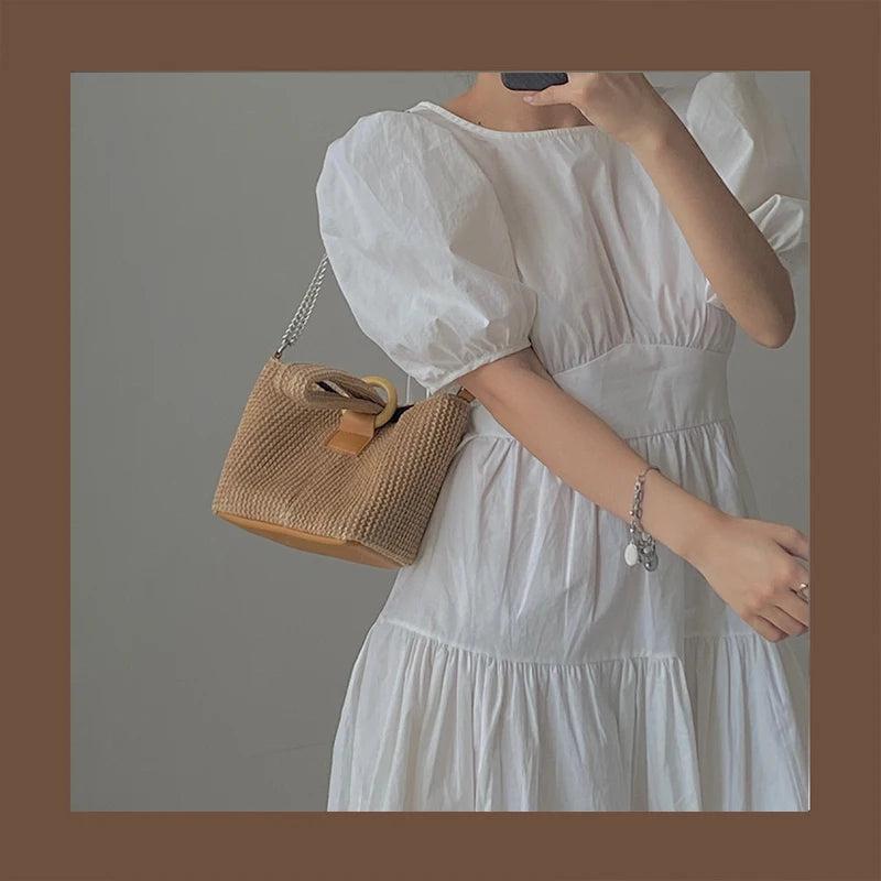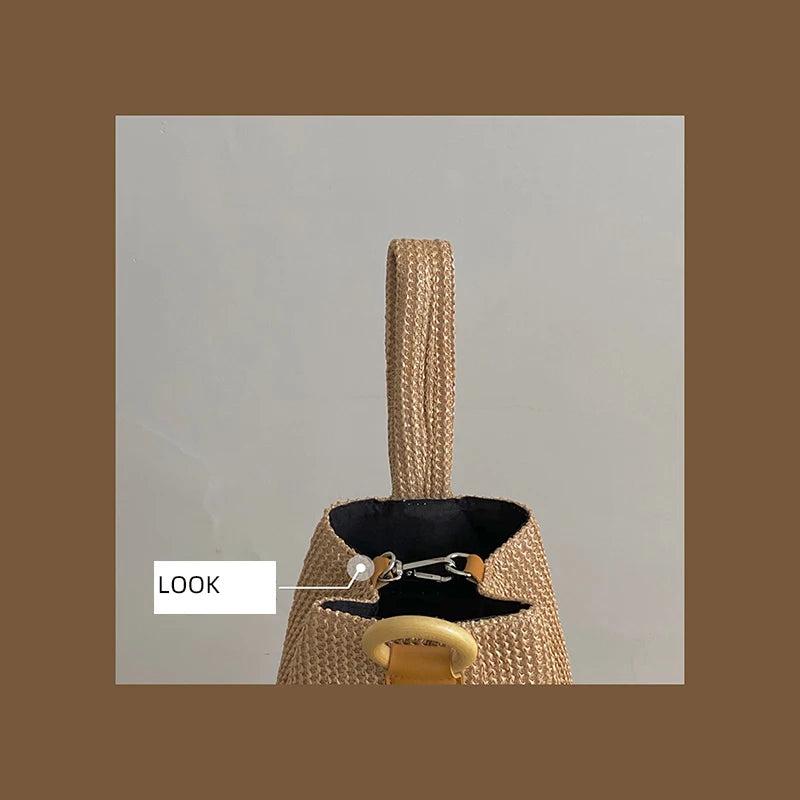 Girly Straw Purse Handbags Chain Shoulder Bucket Bags Retro Crossbody Bag