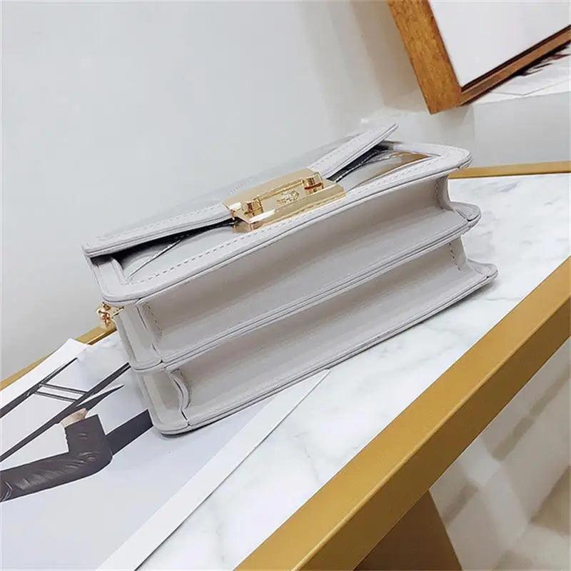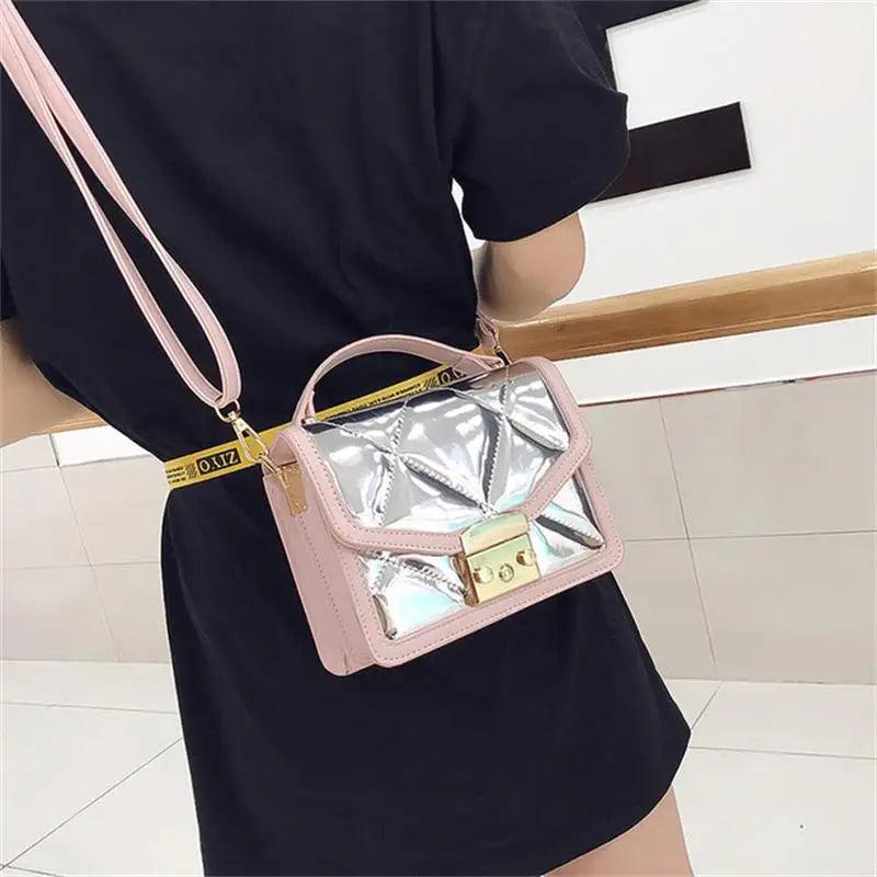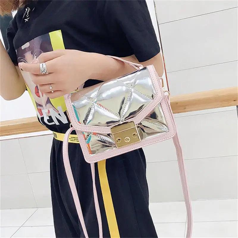 Glossy Pu Stitching Women Handbag Metal Lock Flap Shoulder Messenger Bag