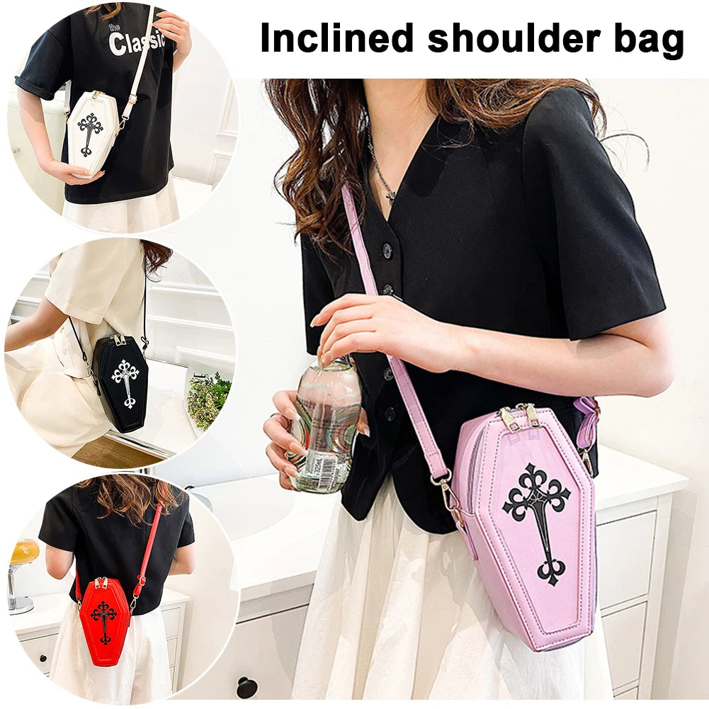 Embrace the retro Gothic style with this coffin shape shoulder bag perfect for Halloween theme parties. Ideal for women and girls.