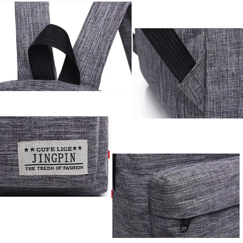 Gray Canvas Backpack 15inch Laptop College School Bag Rucksack