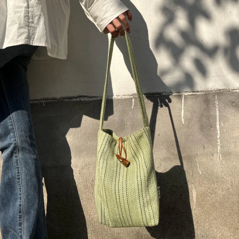 Green Shoulder Bags for Women Summer Mori-girl Handbags Portable Totes