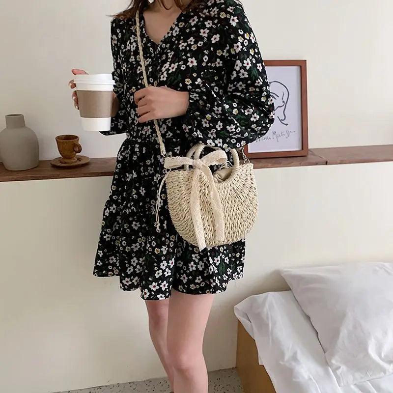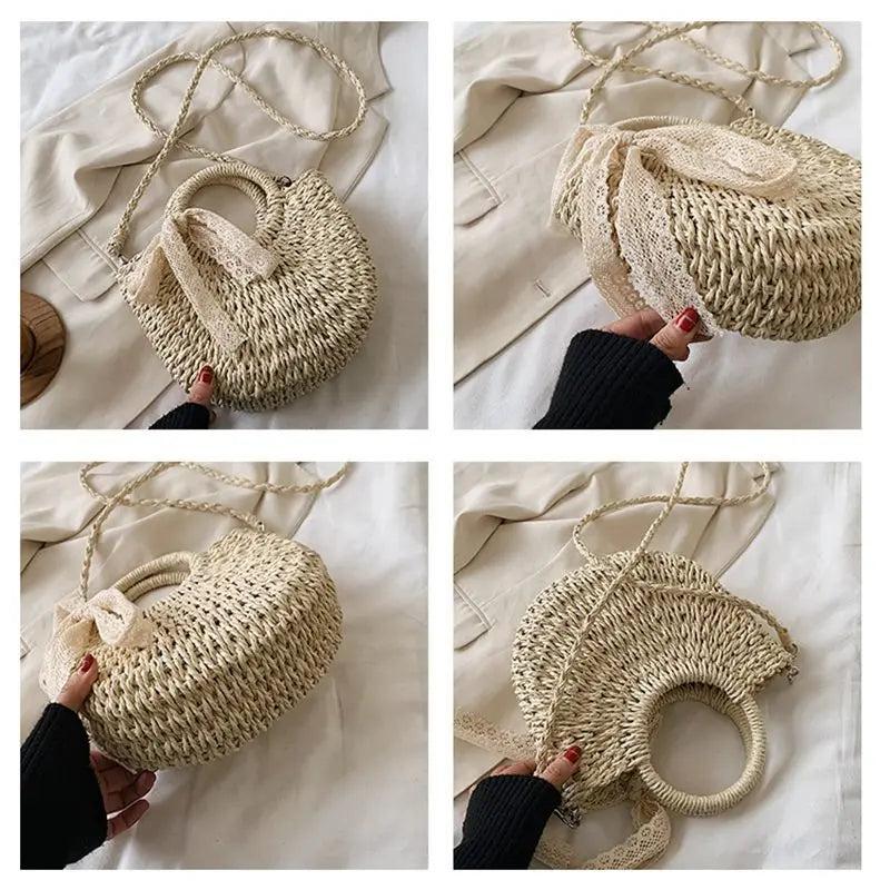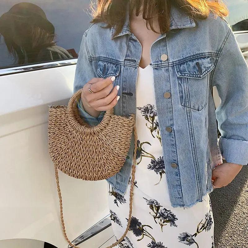 - Half-round rattan woven straw bag