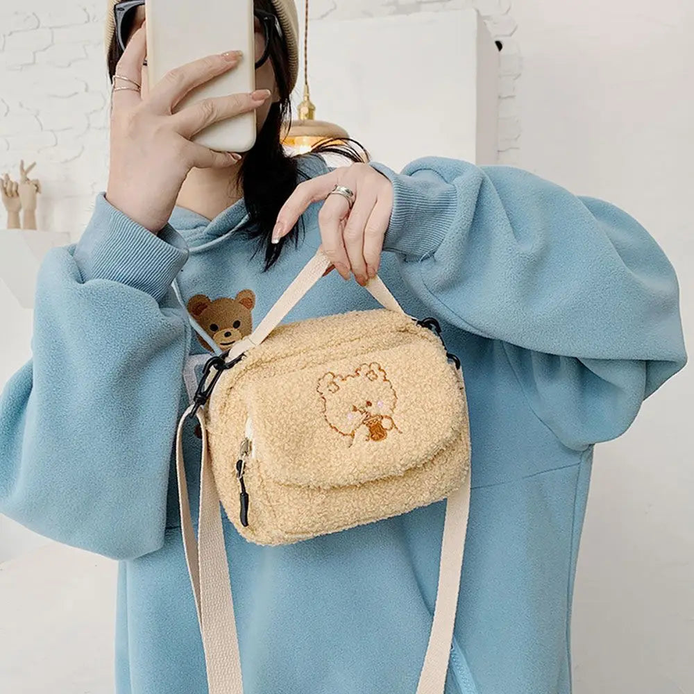 This plush small bag is perfect for female Japanese fashion enthusiasts. It is a stylish and versatile accessory that will complement any outfit.