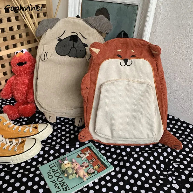 This stylish cartoon backpack is perfect for students and couples, featuring a large capacity design made of corduroy material. Ideal for school, travel, or everyday use.