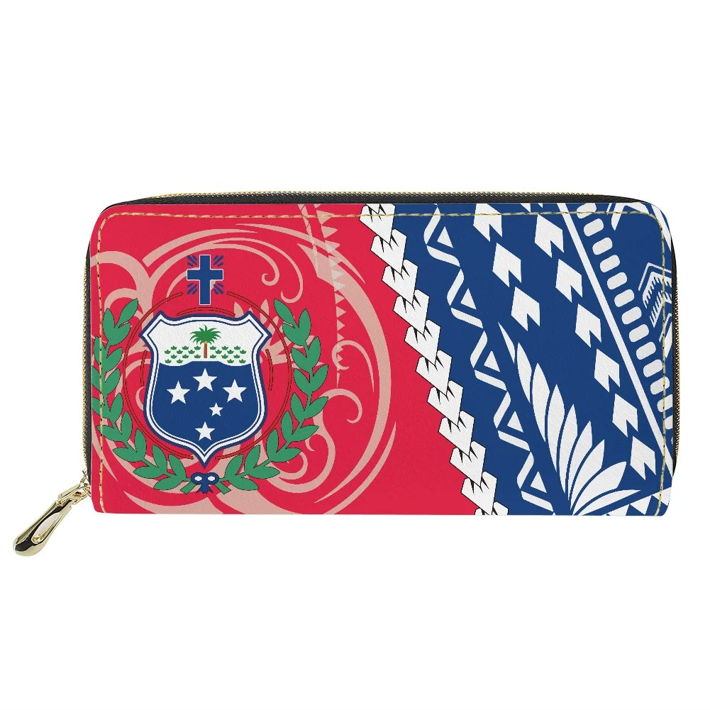 This women's wallet features a beautiful Hawaii flower Polynesian tribal pattern, crafted from high-quality leather. It is a stylish and functional accessory for everyday use.