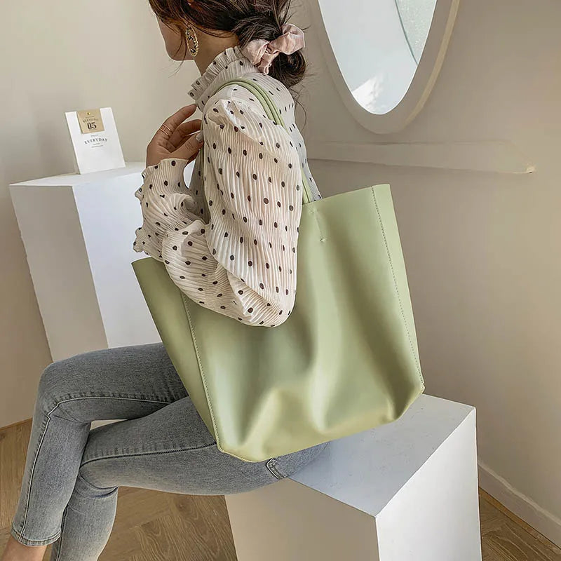 Elevate your style with this high-quality leather tote bag designed for the minimalist woman. It offers a large capacity and is perfect for everyday use.