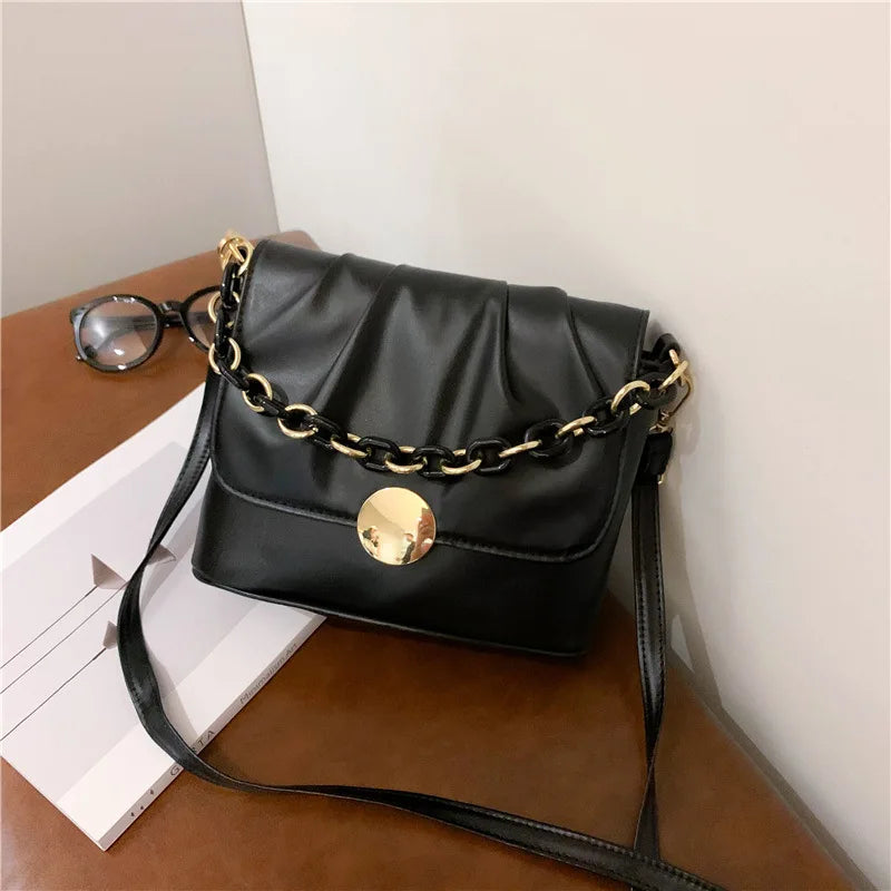 Stay stylish with this solid pleated tote bag made of high-quality PU leather. It features a portable shoulder strap and messenger style, ideal for everyday use.