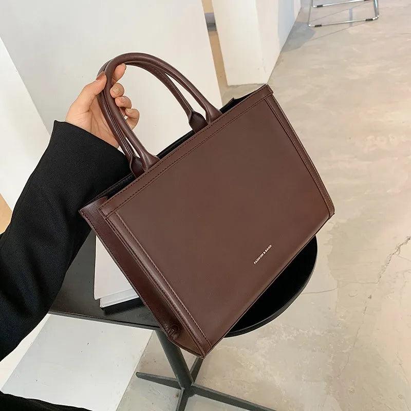 High Women Lady Single Shoulder Crossbody Leather Briefcase Top Grip Handle Bag