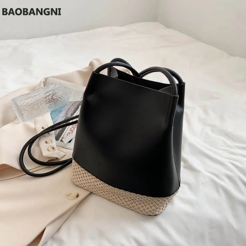 This summer casual one-shoulder underarm bucket bag combines style and practicality. It features a hollow woven design, ideal for carrying daily essentials.