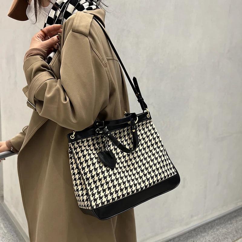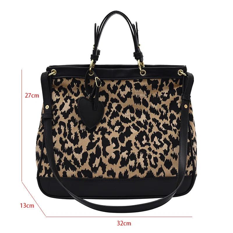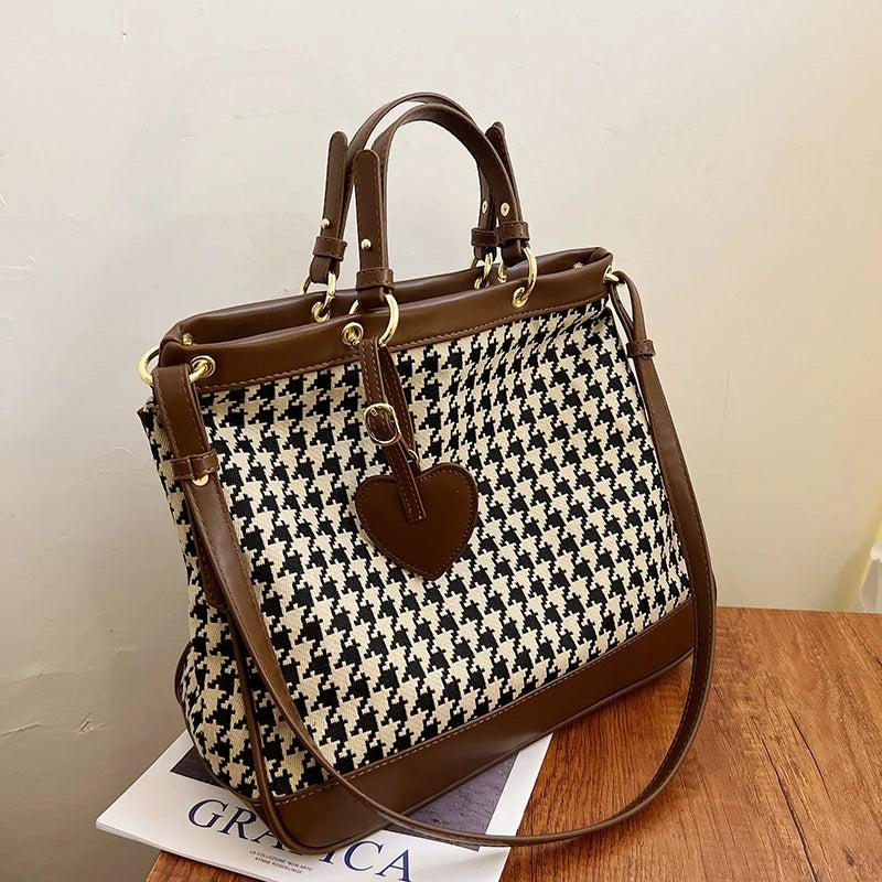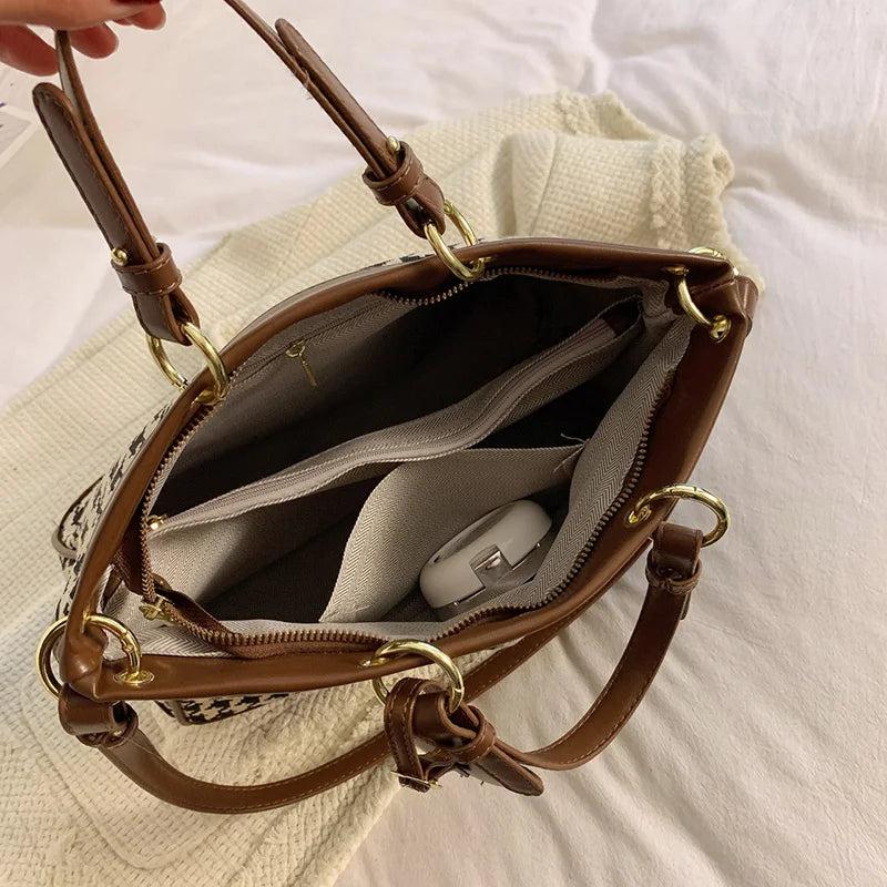 Stay stylish with this classic houndstooth wool shoulder bag featuring a retro leopard print. Made from durable canvas, this purse is perfect for everyday use.