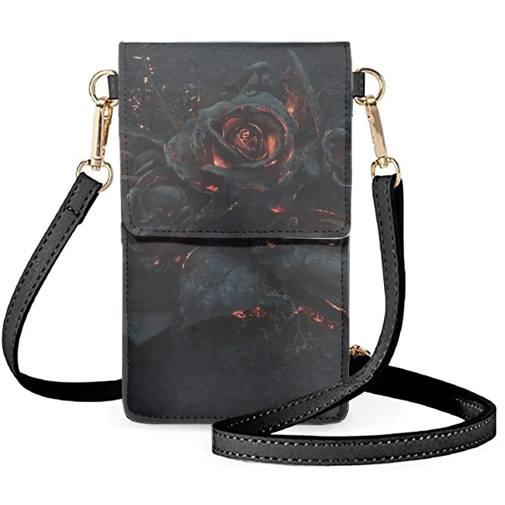 - Stylish Ice Rose Ladies Cellphone Bag with fiery rose design