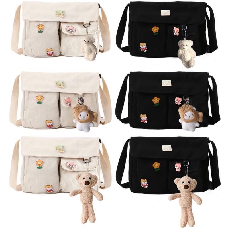 Japanese Harajuku Crossbody Bag for Women with Badges School Handbag