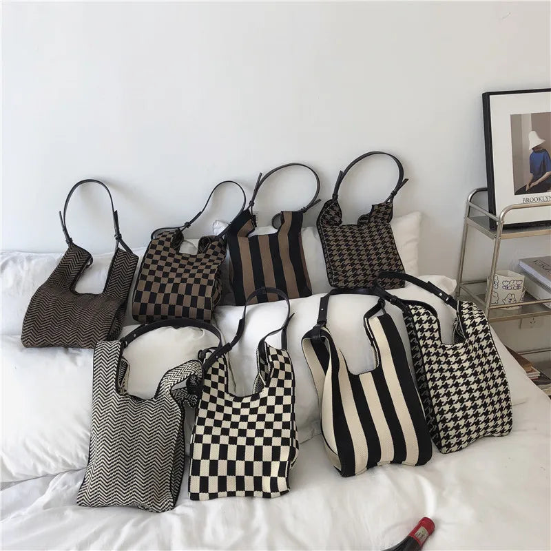 Japanese Knitted Plaid Stripe Shoulder Bag Strap Single Woven Casual Totes Handb