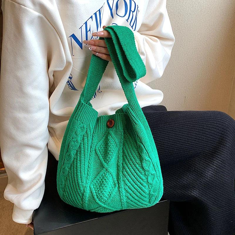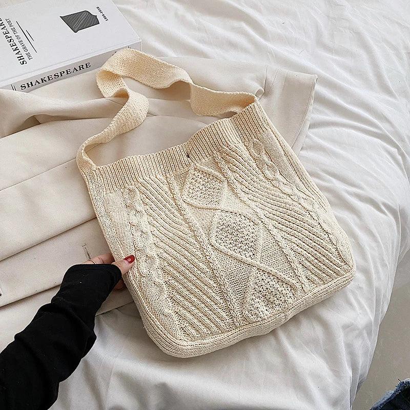 Knitted Handbag Large Capacity Shoulder Tote Bag Portable Shopper Bag