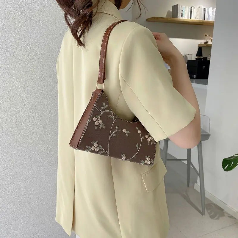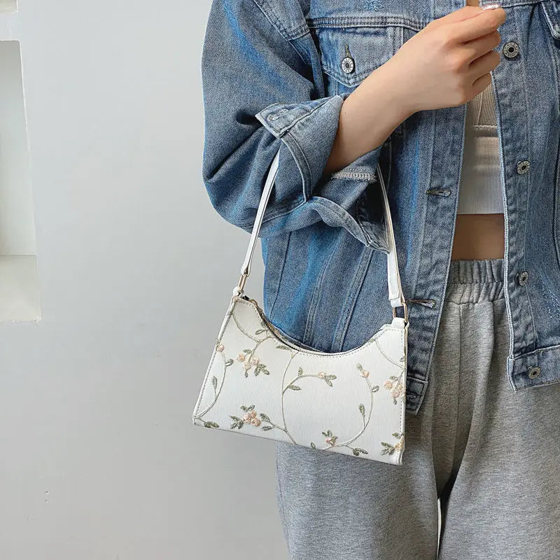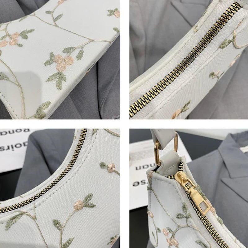 Lace Floral Shoulder Bag Square Handbag PU Leather Zipper All-match
