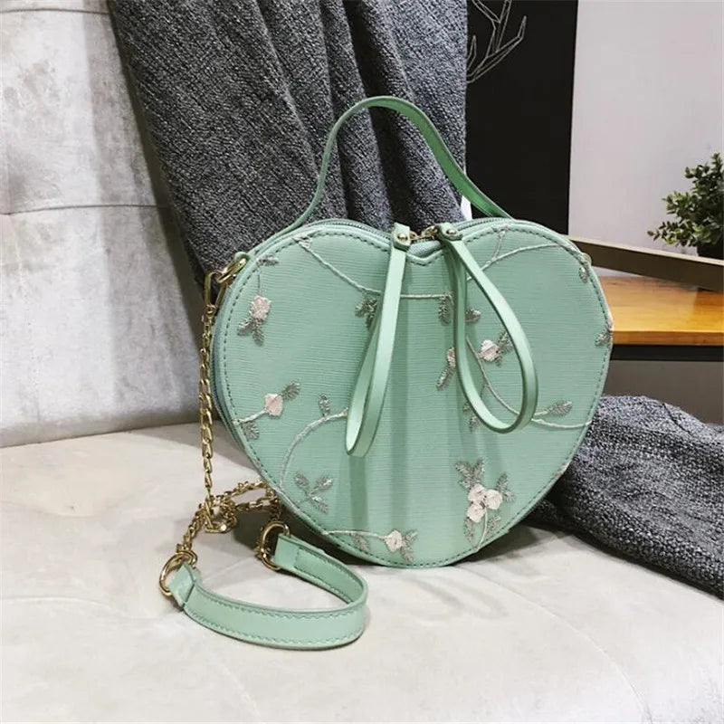 Elegant lace flower embroidered flap bag made of high-quality PU leather with a chain shoulder strap for a stylish look. Perfect for daily use or special occasions.
