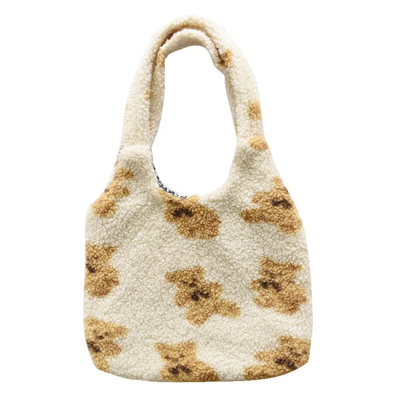Lambswool Shoulder Bag for Women Plush Tote Cartoon Shopper Bag