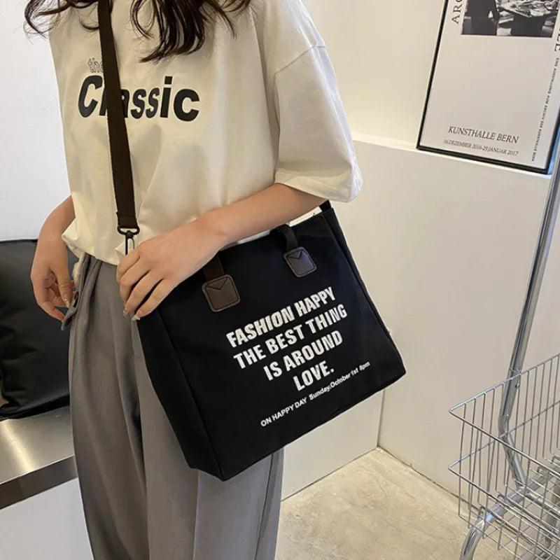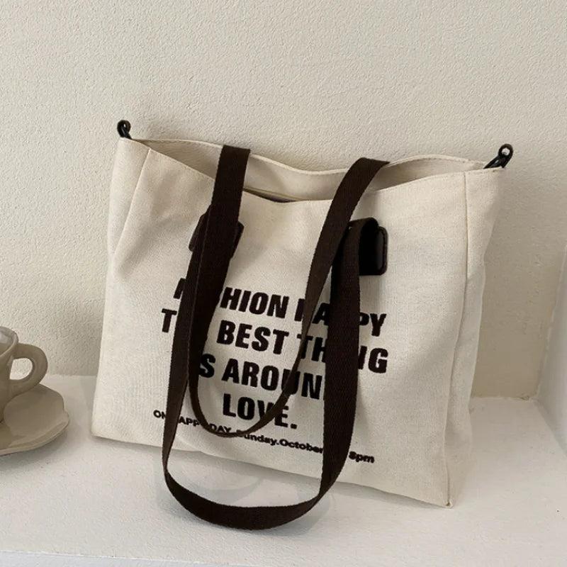 This spacious canvas tote is perfect for everyday use. It features a large capacity to store all your essentials.