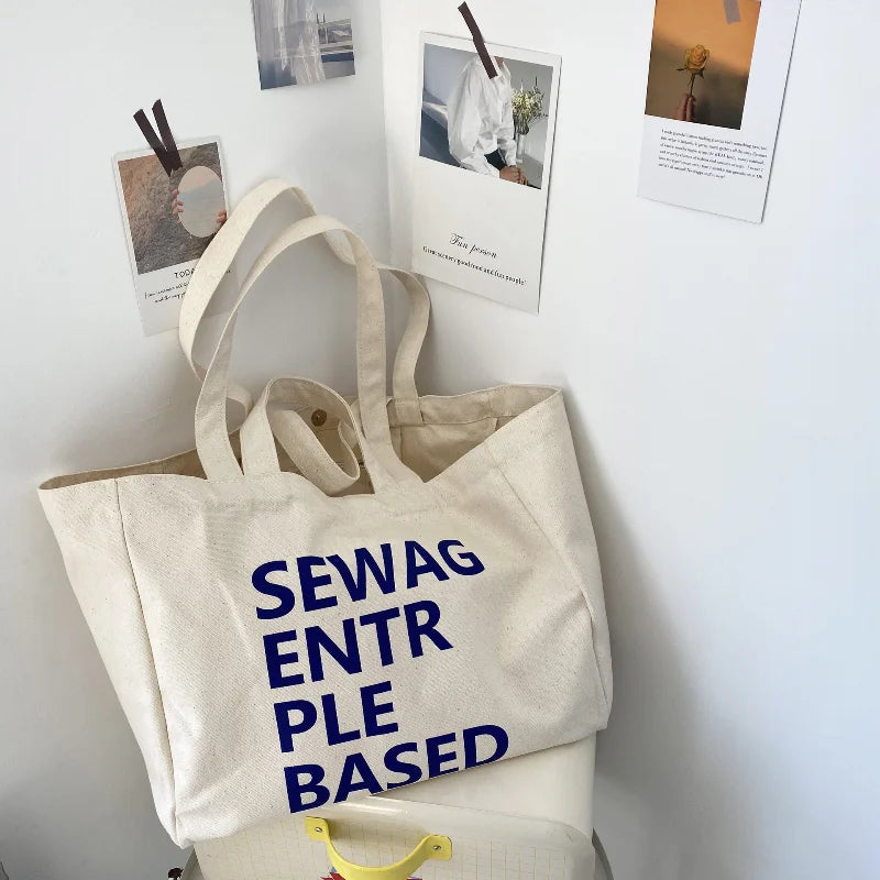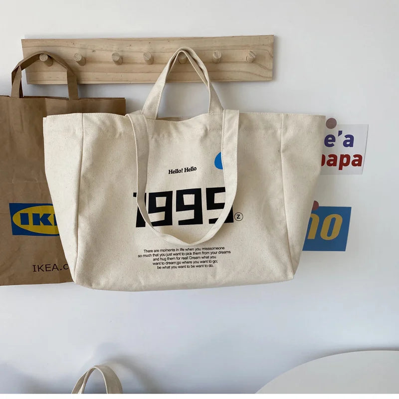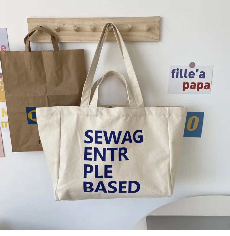 Large-capacity Canvas Women's Shoulder Bag Fresh and Sweet English Shopping Bag