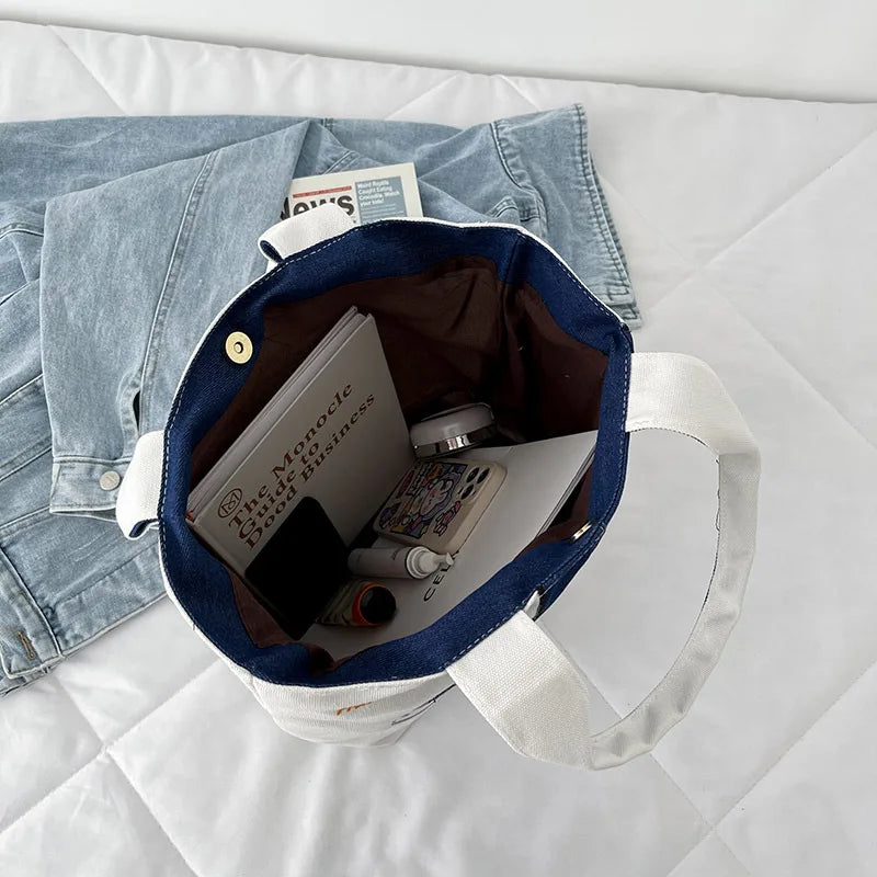 This canvas bag combines Japanese class with Harajuku wind, perfect for shopping, beach outings, or any daily use. The spacious design offers ample storage.