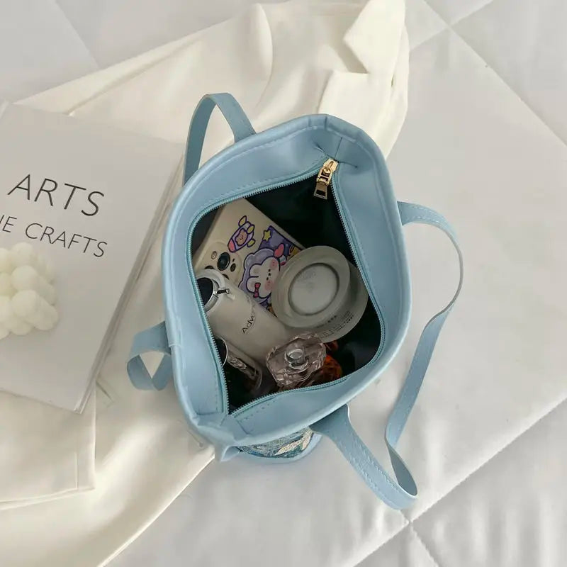 This stylish shoulder bag features a beautiful oil painting flower design, made of high-quality canvas material. It offers ample space for all your essentials and is perfect for shopping or everyday use.