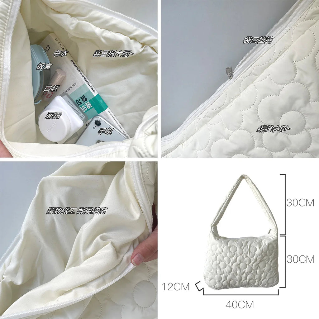 Description:Stay stylish and organized with this women's shoulder bag. The pleated hobo design and quilted flower detailing make it a fashionable choice.Features: Spacious interior for all your essentials Pleated hobo style adds a trendy touch Quilted flower design for a feminine look Adjustable strap for comfortable wear Ideal tote handbag...