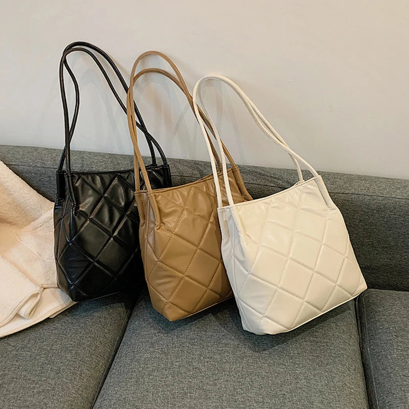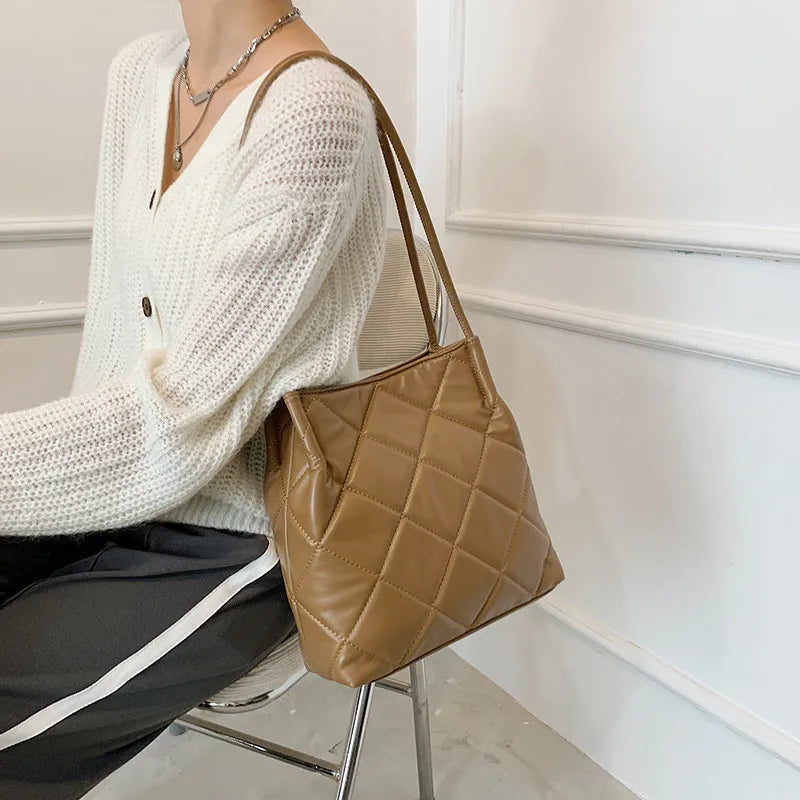 Elegant and spacious shoulder bag designed for women, featuring high-quality PU leather and a stylish bucket shape.