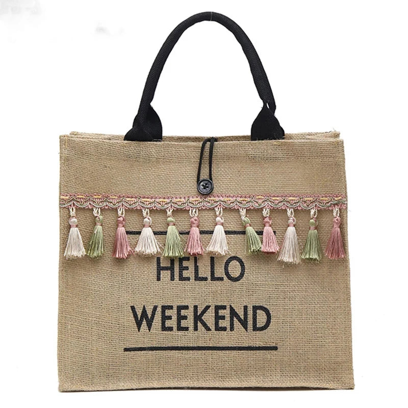 Stay stylish this summer with this lady handbag featuring big letter design and tassel decoration. Perfect for the beach or everyday use!