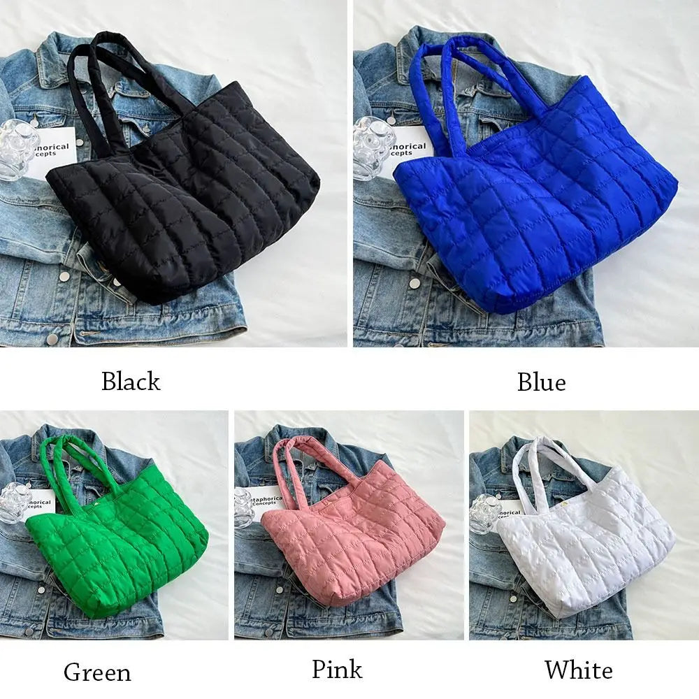 Large Capacity Winter Shoulder Bag Solid Checkered Handbags