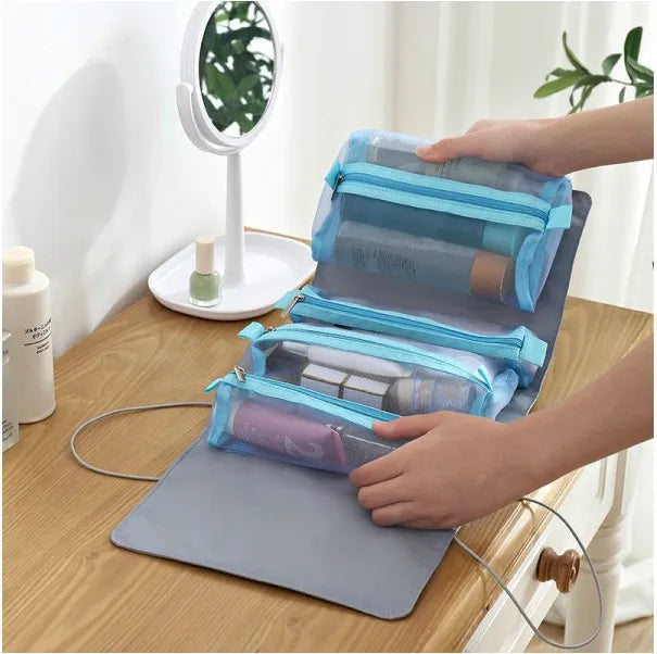 This portable cosmetic bag is perfect for storing all your essential makeup items on the go. Its spacious design offers ample room for your cosmetics and toiletries.