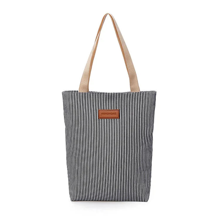 Large Striped Canvas Tote Beach Bag, Summer Shoulder Handbag